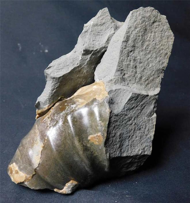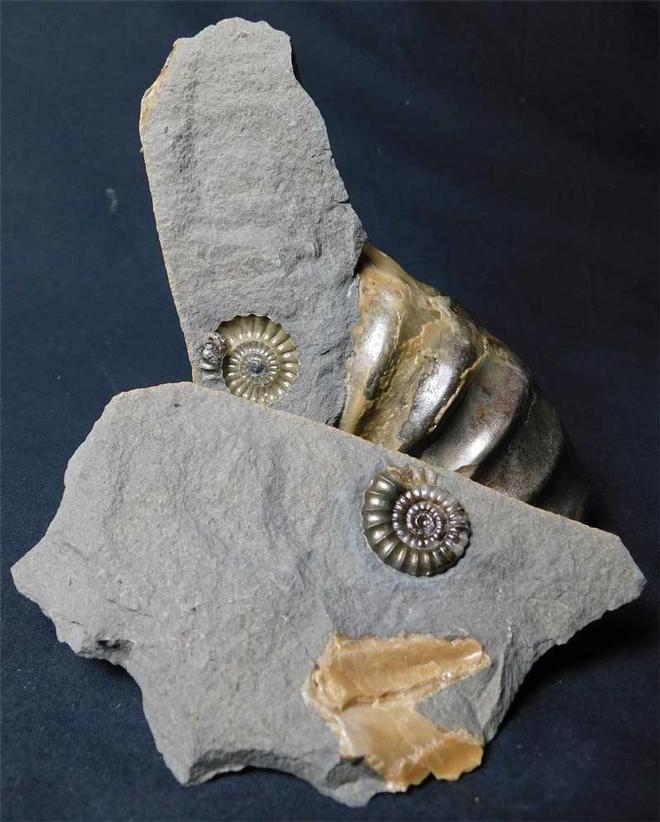 | This really nice and completely unique piece exhibits a high quality solid calcite ammonite and a partial huge Asteroceras obtusum along with its mouth border. Approximately 200 million years old. Discovered in 2002. One for the collector of unusual Lyme Regis fossils. Fossils Direct is a premium collectors website. |