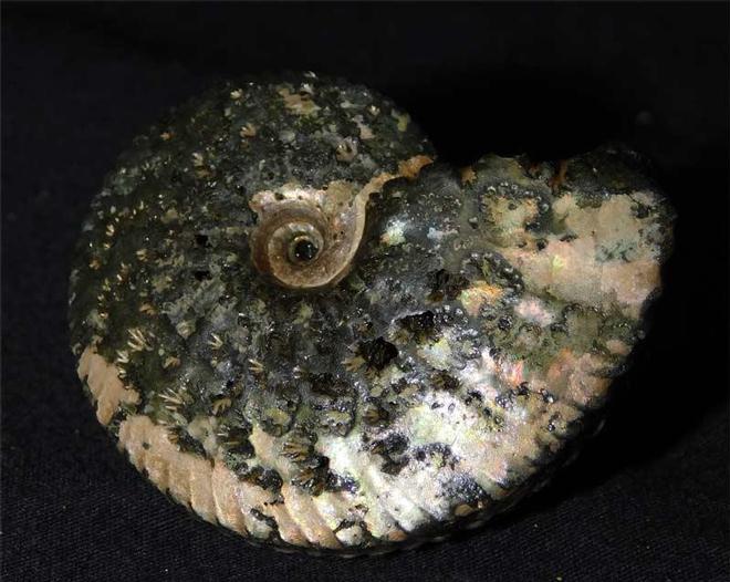 | A lovely ammonite preserved in pyrite and was part of the Underhill collection, collected circa 1971. The natural irridescence on both sides of the ammonite is wonderful, displaying flashes of green, pink, red, yellow, orange. A very good centre both sides and partial 'cats paws' preserved. A lovely specimen and certainly one for the collector of nice Gault Clay ammonites. Approximately 108 million years old. Fossils Direct is a premium collectors website. |