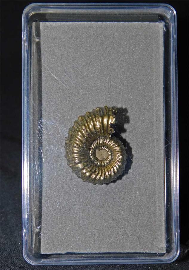 | This very nice example has been preserved in solid pyrite and was collected in 1982 and was part of the Underhill collection. This particular locality is no longer accessible to the collector. This rare type of Kosmoceras has lovely sharp nodes preserved, a very aesthetic feature. One for the discerning collector. Approximately 165 million years old. A clear perspex box is included to protect the ammonites nodes. Fossils Direct is a premium collectors website. |