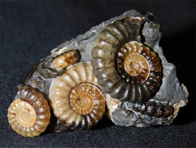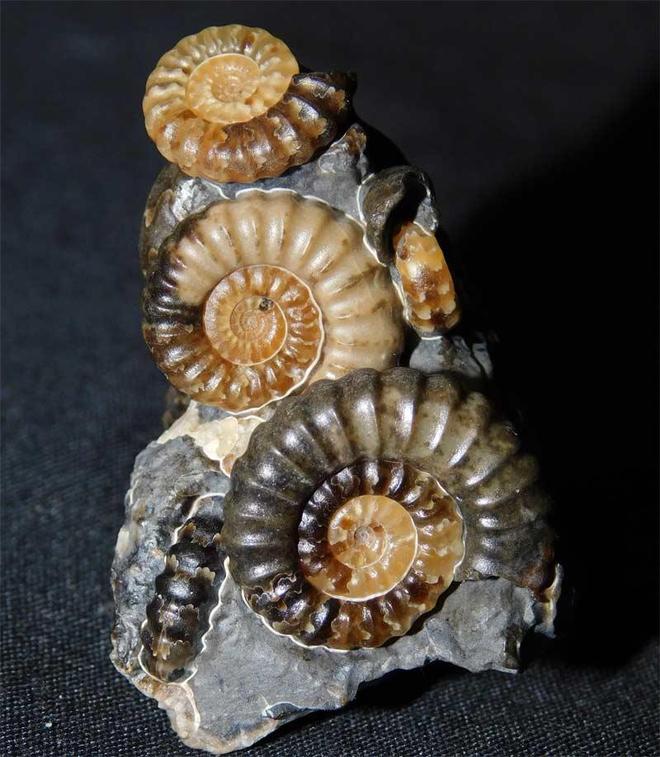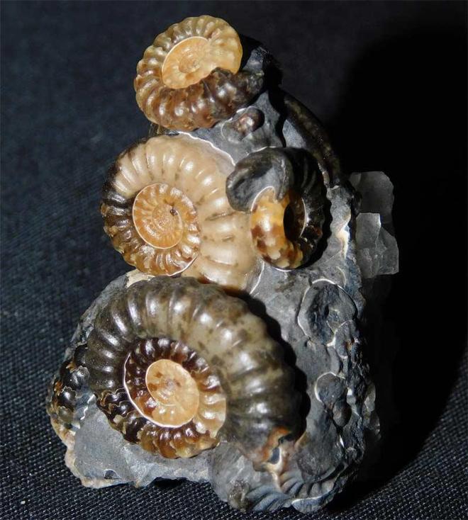 | This marvellous cluster of ammonites has been preserved in various shades of yellow calcite and all have immaculate centres. There is also an Asteroceras cf.smithi on the reverse side. Also preserved is a nice piece of while Baryte. It stands upright on its natural base as a small aesthetic display piece. Fossils Direct is a premium collectors website. |