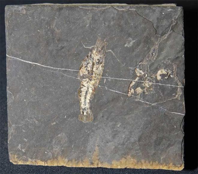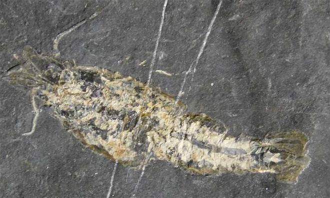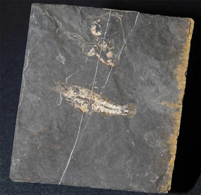 | The detail on this shrimp is incredible bearing in mind that these animals died approximately 340 million years ago. This is a classic example of these oil shale shrimps, this specimen coming from an old collection. A wonderful addition to any collection. |