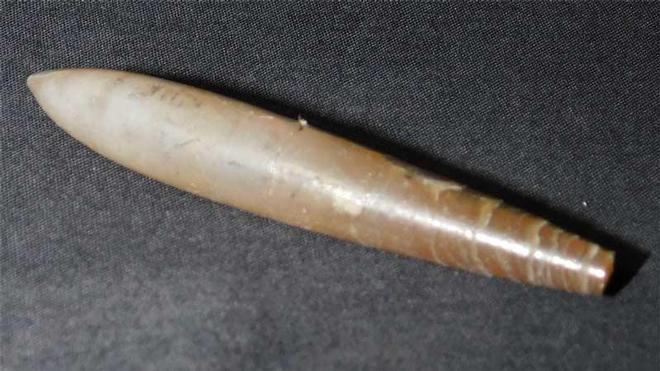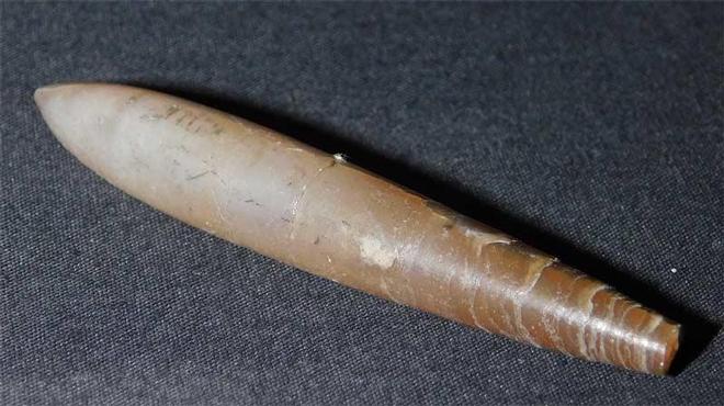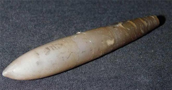 | Fossils from Speeton are few and far between and occasionally beautiful belemnites are to be found. This is a beautifully three dimensional, fully calcified belemnite with the end showing multi colours or 'layers' of calcite. |
