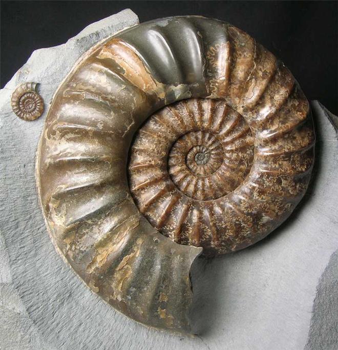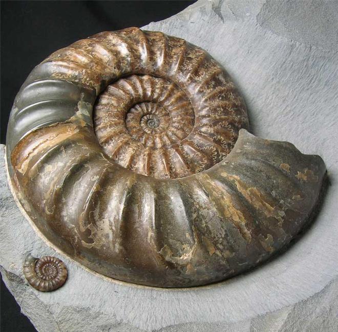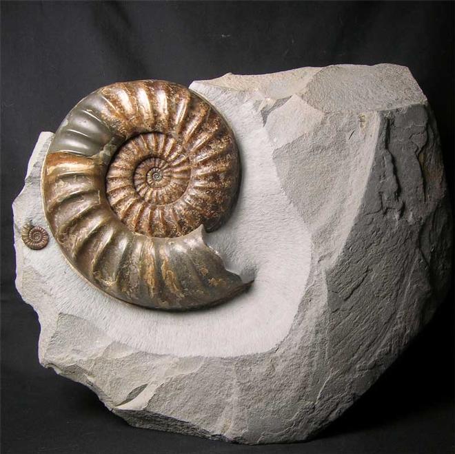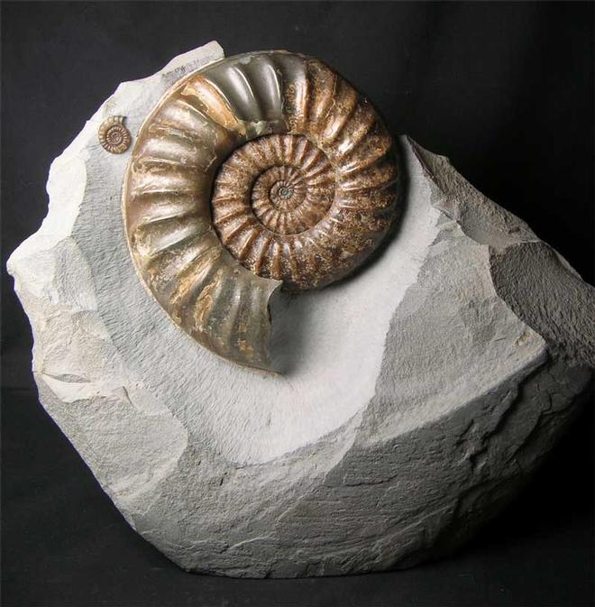 | This marvellous large obtusum is complete and has taken many hours to prepare to this unrivalled standard. Any Asteroceras above 8 inches across found thesedays is a real rarity especially ones of this exceptional quality. This particular specimen was discovered on Black Ven at a place called "Dead Man's Tree" in 1988 and has remained in the same collection ever since. There is also a Promicroceras planicosta (25mm) at the side of the Obtusum which really adds to the aesthetics. This solid brown calcified ammonite would grace any museum or private collection anywhere in the world. As always the preparation is superb on Fossils Direct as this is always high priority on our agenda. The ammonite is approximately 200 million years old and lies in a substantial piece of matrix which has a cut base for ease of display. |