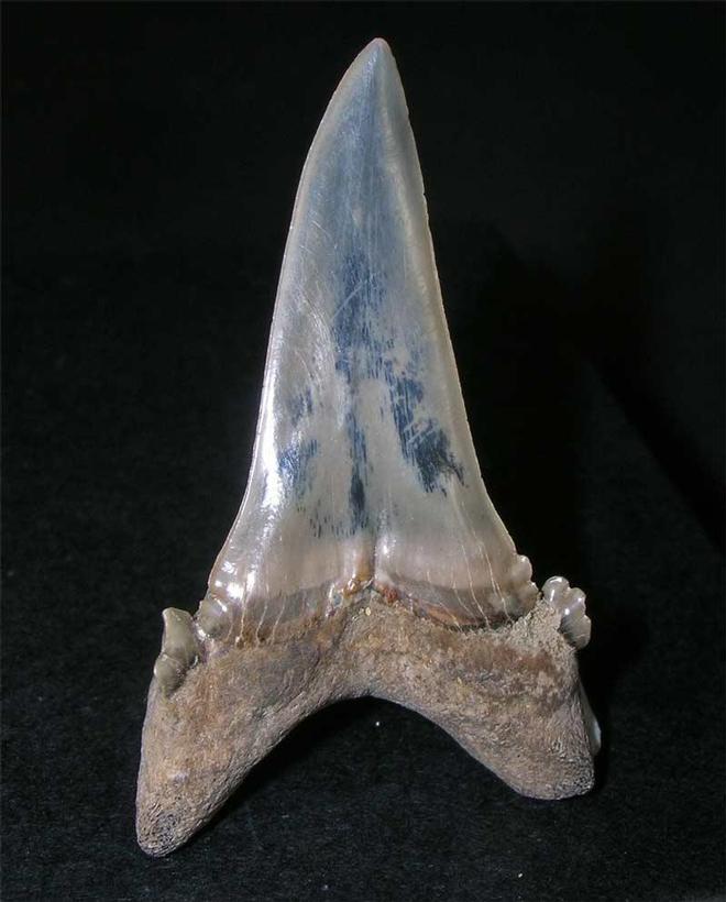 | From an old collection comes this rather superb and high quality shark's tooth. The tooth has a lovely patina and the side cusps are exceptionally well preserved. Teeth of this size and quality are now becoming scarse. |