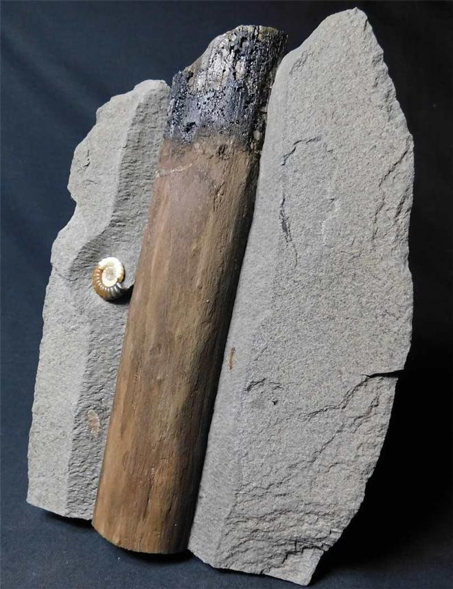 | This really well preserved fossil exhibits a stunning multi coloured promicroceras ammonite, next to a 3D fossil branch from the Monkey Puzzle tree family which is approximately 200 million years old. The base of the rock has been cut flat for upright display. An interesting feature with this fossil is the tip of the branch has been burnt in a forest, maybe a lightning strike all those millions of years ago. Very rare to see this preservation. Certainly one for the discerning collector as an aesthetic display piece. Discovered in 1994 and fully prepared by Andy Cowap using traditional techniques. No iron powder used. Fossils Direct is a premium collectors website. |