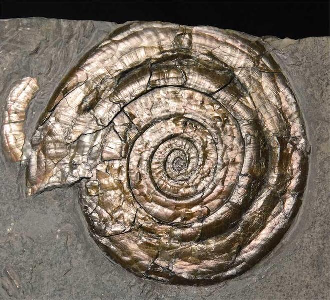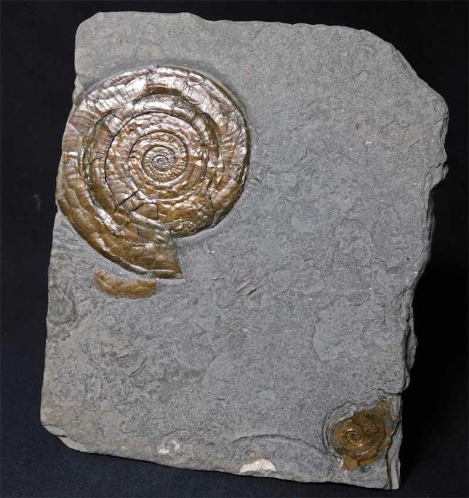 | This lovely example is well above average size for the species. The specimen lies on an aesthetic piece of hard shale and was collected circa 1979. There is also an irridescent sheen on the ammonite surface. A really nice display piece for the home or office space which is approximately 210 million years old. Fossils Direct is a premium collectors website. |