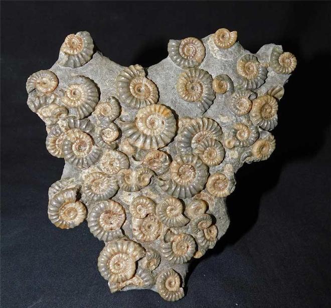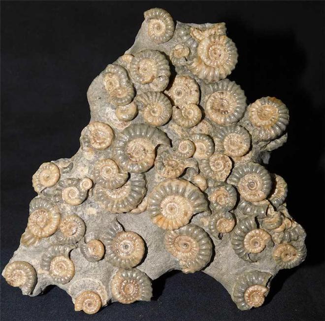 | This beautiful multi promicroceras piece was discovered in 1988 after a small landsli8p on Black Ven brought down several small 'Woodstones'. These intense ammonite associations make really aesthetic and totally unique display pieces. This one has been fully prepared and is approximately 200 million years old. This fossil resided in the late Gordon Walkden collection for over 30 years. These multi ammonite fossils from this stretch of coastline are nowadays becoming incredibly rare to find. |