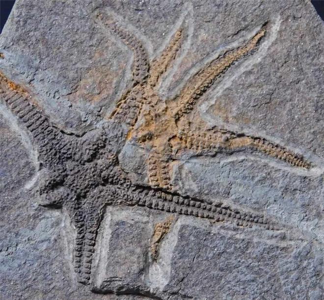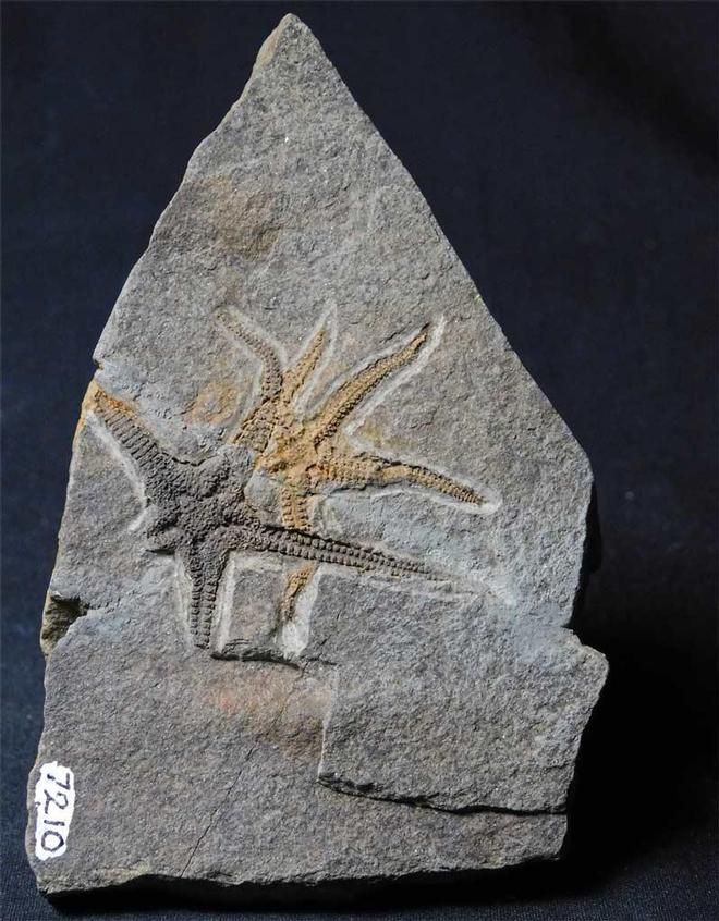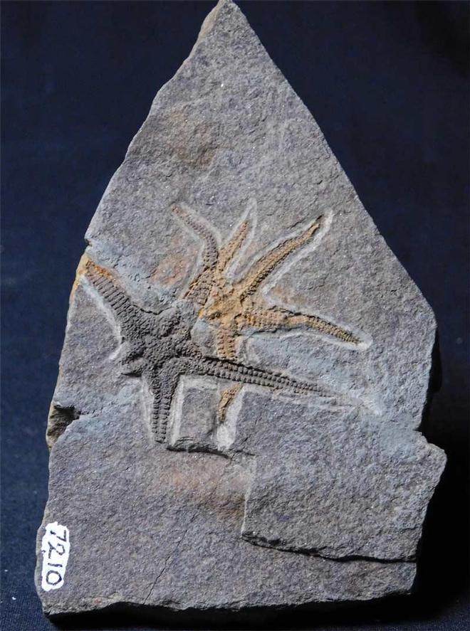 | This exceptionally rare double starfish has tremendous details, especially under magnification. These stunningly preserved starfish are approximately 470 million years old. This famous Ordovician locality hasn't been accessible to the collector for decades now. This specimen was collected in 1969. A small repair runs through the matrix but is not noticeable on the surface. It resided in the late GORDON WALKDEN collection. |