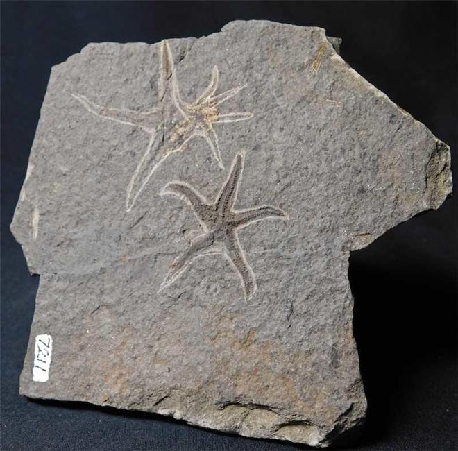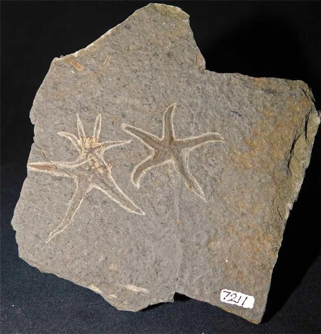 | The Urasterella is the isolated specimen. Starfish from this iconic site are exceedingly rare, and the age is approximately 460 million years old. This specimen was discovered in 1966 and resided in the late professor GORDON WALKDEN collection. The rock has an old repair through the middle. This locality has been long lost to history and any prospecting is prohibited thesedays. One for the serious collector. |