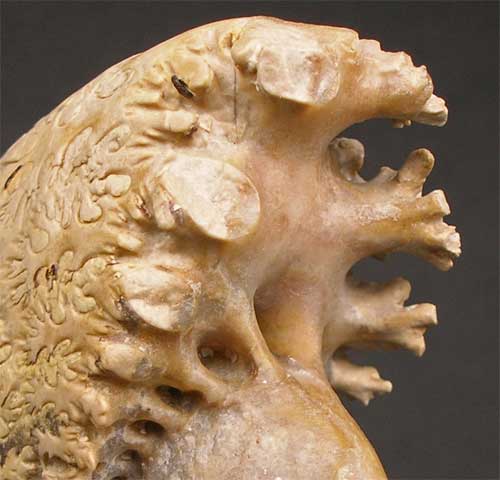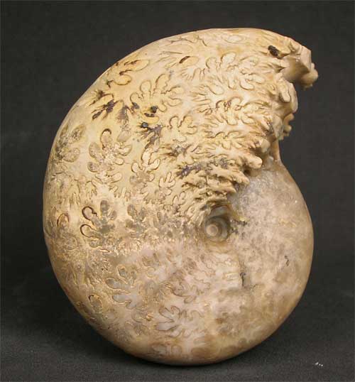 | A stunning and very rare example of this classic upper lias ammonite preserved in cream coloured calcite and prepared by Andy Cowap. The centre of the ammonite is perfect and the sutures have been prepared in full relief to give this stunning effect. We do not expect this wonderful example to hang around !! Approximately 180 million years old. |