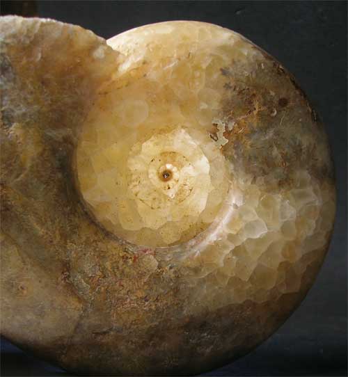 | A very high quality solid yellow calcite ammonite which is extremely rare from this world famous Oolithic locality. When held up to the light you see the beautiful transluscent yellow colour. Ammonites of this quality and rarity seldom come on the open market for sale. Many hours of preparation has gone into this ammonite carried out by Andy Cowap. |