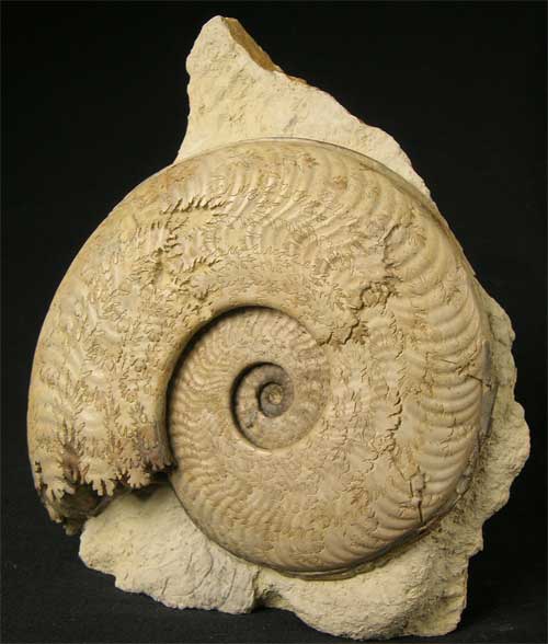 | Another fantastic display ammonite with an immaculate centre. The ammonite has been preserved in different shades of brown calcite. The last suture has been fully exposed which takes many hours of preparation for maxium aesthetics. Such quality is becoming extremely rare nowadays to collect from this locality. The ammonite has been prepared on a lovely piece of cream coloured matrix which also has a cut base for ease of display. This wonderful display ammonite would grace any home or office space. Approximately 180 million years old. Prepared by Andy Cowap. |
