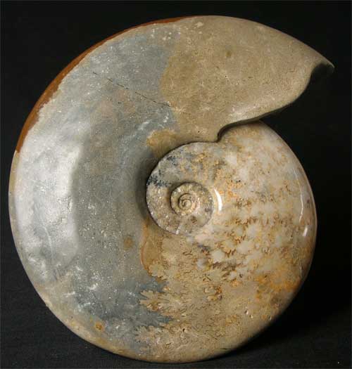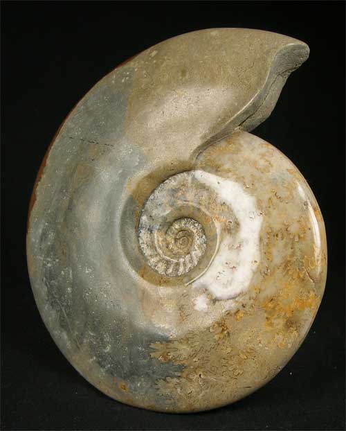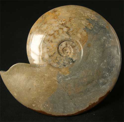 | A stunning, very large specimen which has a totally complete mouth border. The ammonite has been ground smooth then a professional polish applied to maximise the aesthetics.The keel has deep iron staining at the ventre but this only adds to the beautiful colours. Many hours of preparation has gone into thie unique ammonite approximately, 176 million years old. Very rare size and quality. |