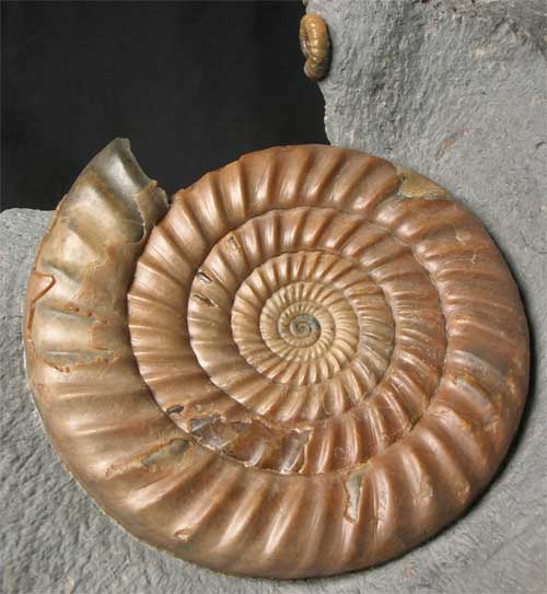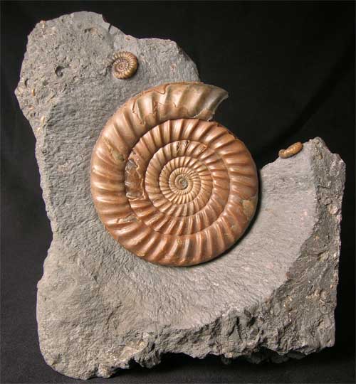 | This stunning Ammonite is extremely rare from Dorset.This world class fossil was discovered from a very small area of Black ven when there was a landslip some 20 years ago and very few have been found since.The specimen itself took many hours to prepare by Andy Cowap and has resded in his collection for over 15 years. There is also two Promicroceras precompressum Ammonites accompanying the Epophioceras. It is highly unlikely that another Epophioceras of this calibre will be offered for sale due to the simple fact that only a few were ever discovered! This fossil is for the serious collector of very fine ammonites. |