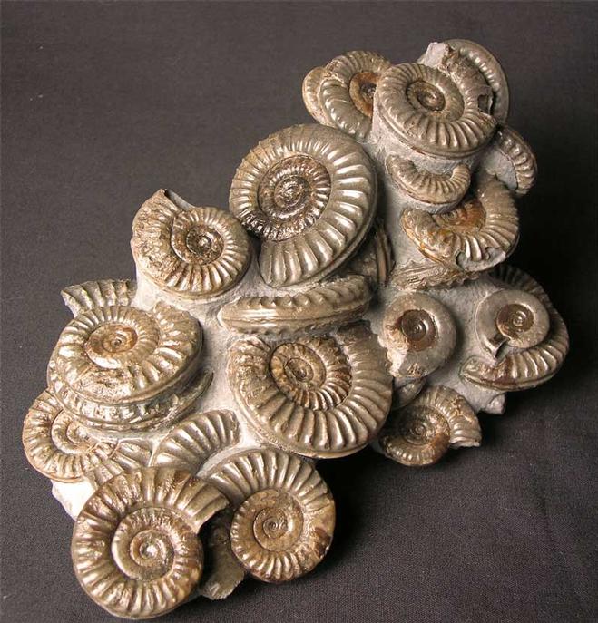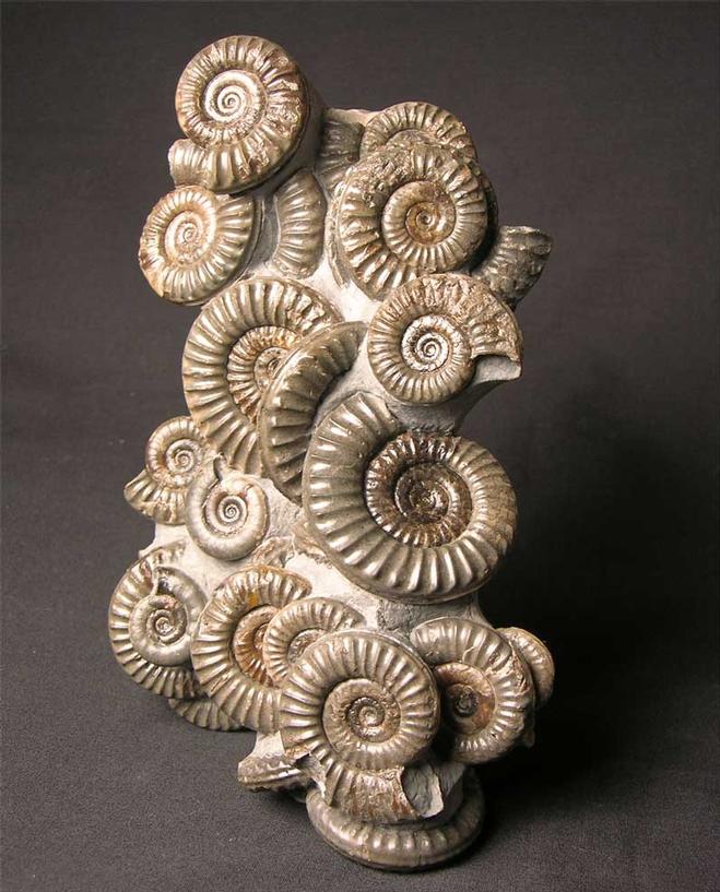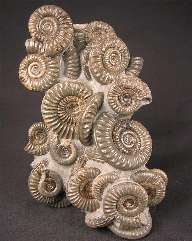 | A stunning and rare cluster of these classic Yorkshire coast ammonites. Many hours of preparation has gone into this incredibly aesthetic piece. The ammonite sizes range from 48mm to 23mm. Only very rarely do ammonite multi's of this quality come on to the open market for sale. The colours of the ammonites range from different shades of grey's and creams. There is great depth in this piece and all the ammonites are solid calcite. This superb display fossil would grace any home, office or collection. Approximately 203 million years old. |