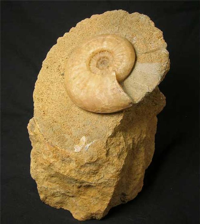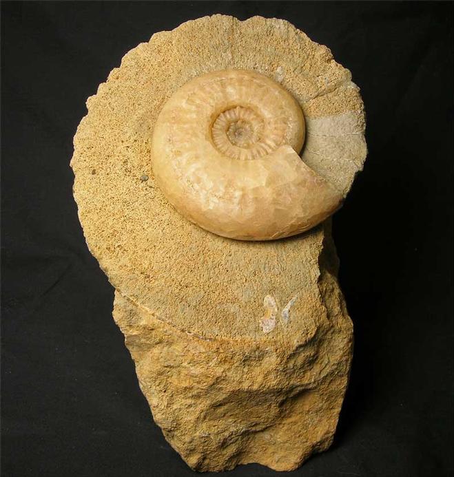 | Many hours of preparation has gone into this stunning solid yellow calcite ammonite by Andy Cowap. This ammonite was discovered at the famous Oolithic site of Bradford Abbas by Andy himself. The overall appearance of the matrix is very aesthetic, a good solid piece of oolithic rock with a cut base for ease of display. In the centre of the ammonite are small nodes/spines which are typical with this type of ammonite. A stunning and rare display fossil. Approximately 174 million years old. |