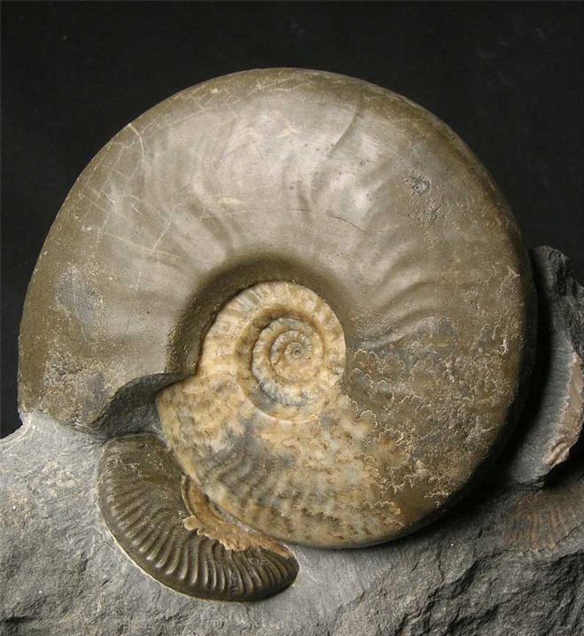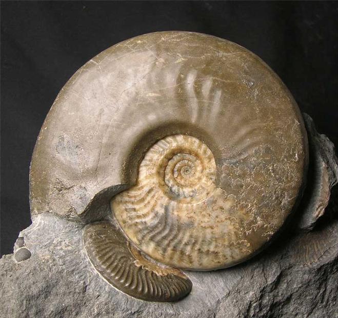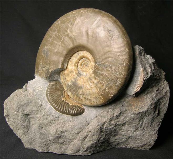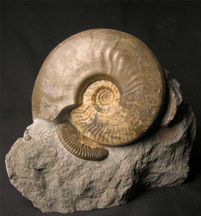 | This stunning Ludwigia is of the highest quality, only very rarely do examples such as this one come onto the open market for sale. From the shores of the Isle of Skye, these specimens are becoming very scarse as there is very little erosion taking place. The colours in the ammonites are a beautiful brown and cream Calcite. Overall this is a wonderful and rare display ammonite fossil. The specimen has a cut base for ease of display and is approximately 175 million years old. |