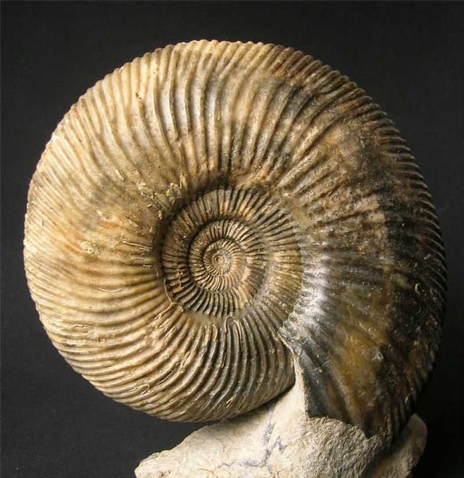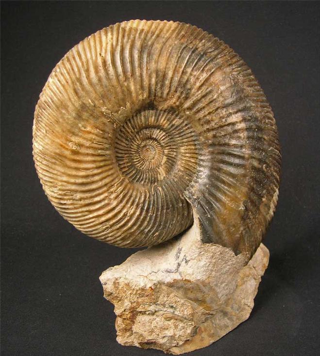 | Many hours of preparation go into unique display ammonites such as this one. Highly ribbed ammonites prepared to this standard by Andy Cowap, are highly prized by collectors worldwide. The matrix has a cut base for ease of display and the rock surrounding the ammonite has been sculptured for maximum aesthetics. This ammonite has a perfect and immaculate centre. A stunning specimen. |