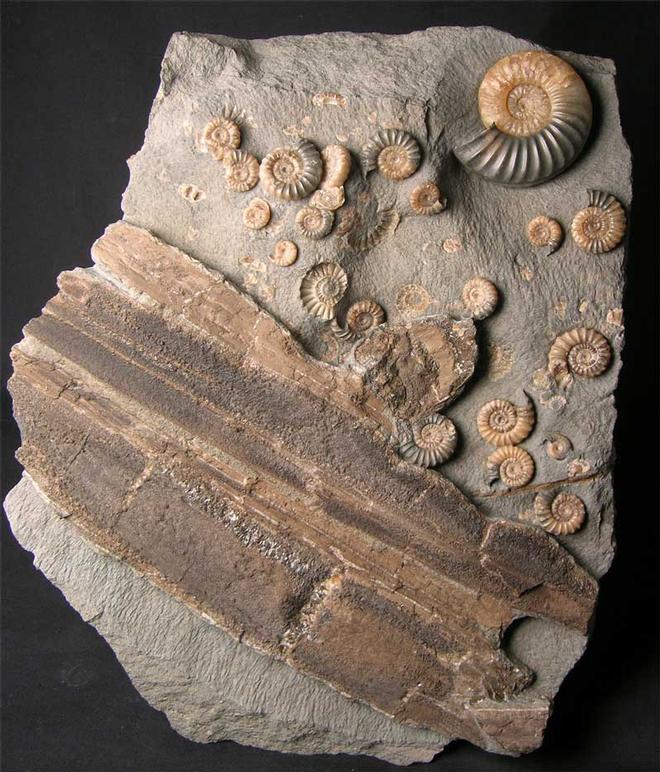 | A classic multi-fossil from Lyme Regis which would grace any collection. Many hours of preparation has been spent to make this a very aesthetic fossil and a superb display piece for the serious collector. The fossil includes an Asteroceras confusum (55mm) and 19 Promicroceras planicosta's. Also there is a large piece of fossilised wood which has lovely surface detail throughout. Multi-ammonite and Wood fossils rarely come onto the open market for sale from this locality. All the ammonites are solid calcite. This fossil was discovered after a storm in 1989 and has only recently been prepared. A chrome display stand is included with this fossil Approximately 200 million years old. |