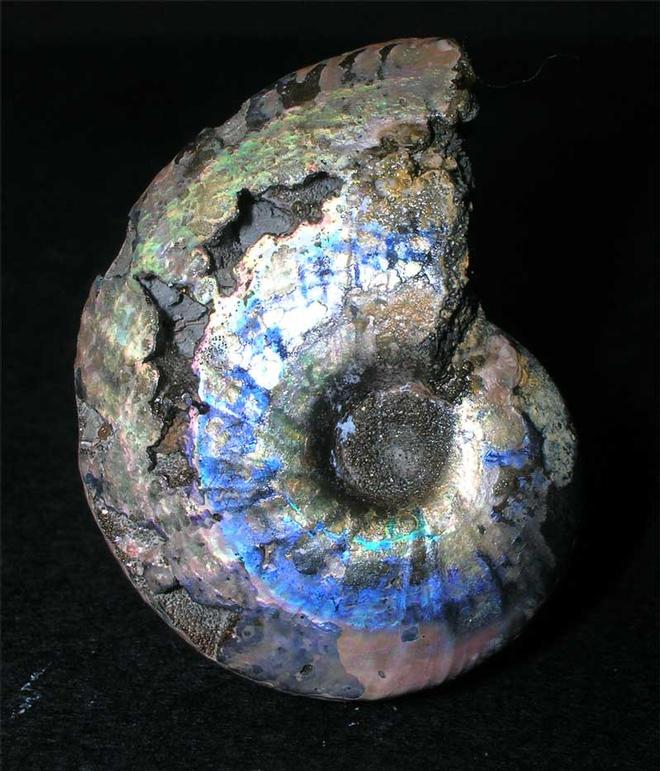 | Fossils Direct strive to bring the finest fossils to the open market and this is no exception ! This is the finest Gault clay ammonite with the most amazing irridescent shell exhibiting fantastic flashes of the very rare blue spectrum of colours. When the ammonite is viewed at different angles, other colours come into play which include colours from the green spectrum. Probably one of the finest displays of irridescence we have ever seen on an ammonite. |