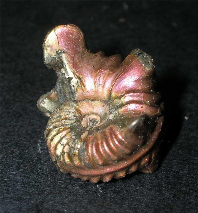 | This is a truly amazing example of this rare Gault Clay ammonite which has been beautifully preserved and has an irridescent shell. The ammonite itself looks like copper. This ammonite shows all the classic exaggerated ribbing which is synonomous with this particular species. They simply don't come any better than this - one for the serious collector !! |