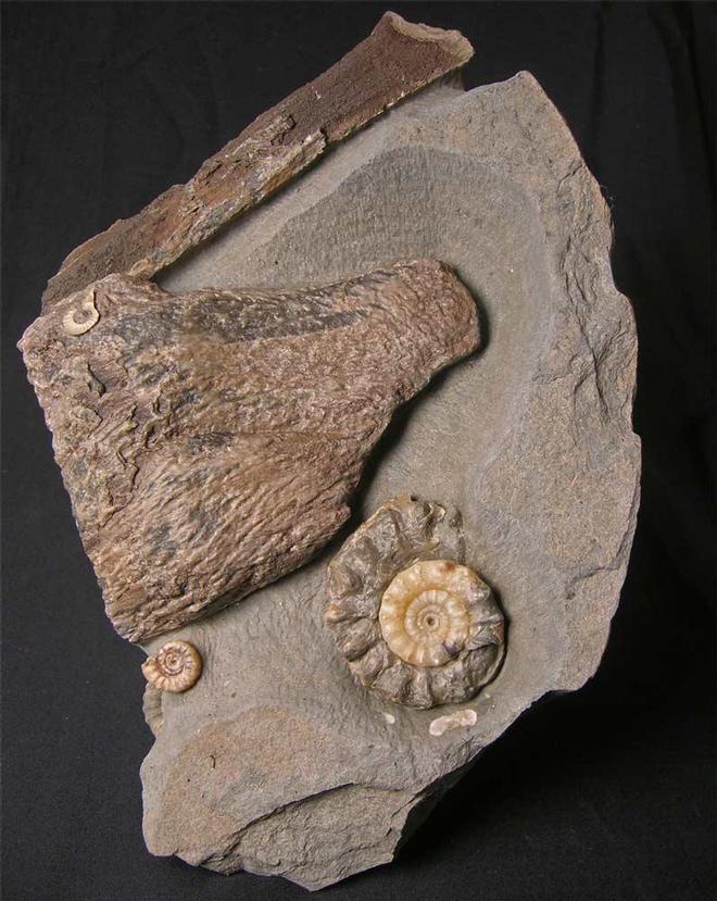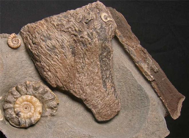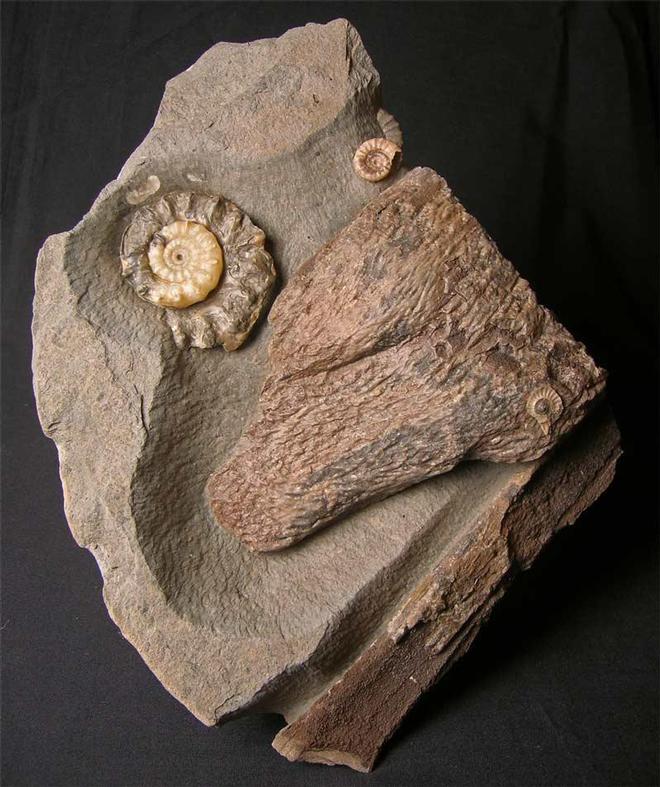 | A substantial and highly aesthetic fossil exhibiting a Xipheroceras planicosta and a Promicroceras planicosta, both preserved alongside a bizarre root-like structure with an attached branch. Wood and ammonites on the same piece of matrix are always highly sought after by collectors and are becoming increasingly scarce to find from this world famous fossil locality. The fossilised wood is from the ancient Monkey Puzzle tree and has superb detail and colouration throughout. Approximately 200 million years old. |