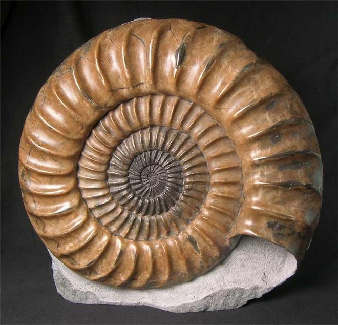 | These ammonites are highly sought after by collectors and interior designers as they can form a focal point. Only rarely examples as fine as this come onto the open market, this unbroken specimen has a restored middle (Which is the case with 95% of these)and has a natural base whereas most of the ones that you see for open sale are of poor quality and on false concrete bases. The specimen is 370mm across and has been beautifully prepared in its natural matrix and has a stunning keel and a cut base for ease of display. They simply don't come any better than this!! A real gem from the world famous Jurassic coastline of Dorset. Approximately 204 million years old. There are more images available on request and supersized images in Showcase fossils. |