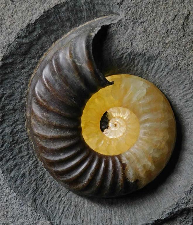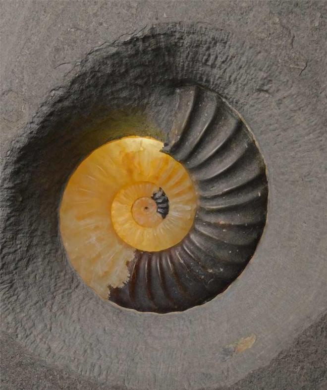 | This magnificent and totally unique piece of preparation work by Andy Cowap, would make a wonderful statement piece in any home or office space. The ammonite has been prepared both sides so any light passes through the shell illuminating it as shown in the images, for stunning effect. The ammonite lies in a very aesthetic half nodule which also has a cut base for upright display. These one off awesome fossils prepared by Andy Cowap are highly sought after worldwide and are real collectors items and a sound investment for the future!! Approximately 200 million years old. |