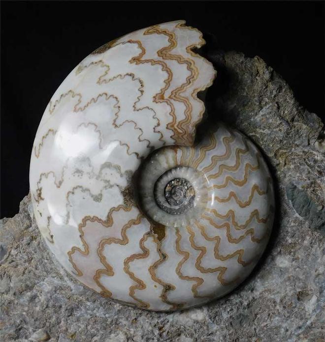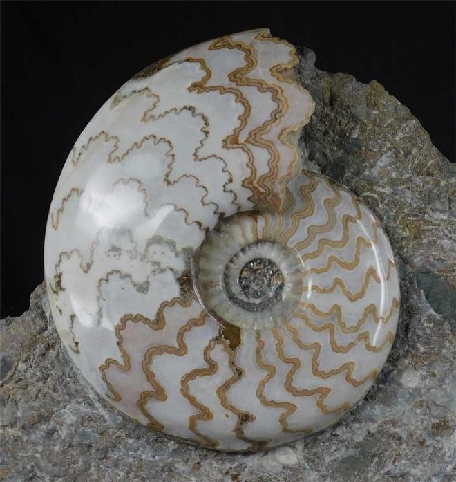 | This wonderfully preserved classic ammonite has a beautiful high polish and exhibits lovely colours throughout. These world class ammonites come from a locality which was back filled some 20 years ago and so are becoming increasingly difficult to obtain thesedays. This particular specimen lies at the top of a large and natural piece of Frodingham ironstone with no cut base, some collectors and interior designers prefer the natural stone base and not a cut base. A classic ammonite, approximately 200 million years old. |