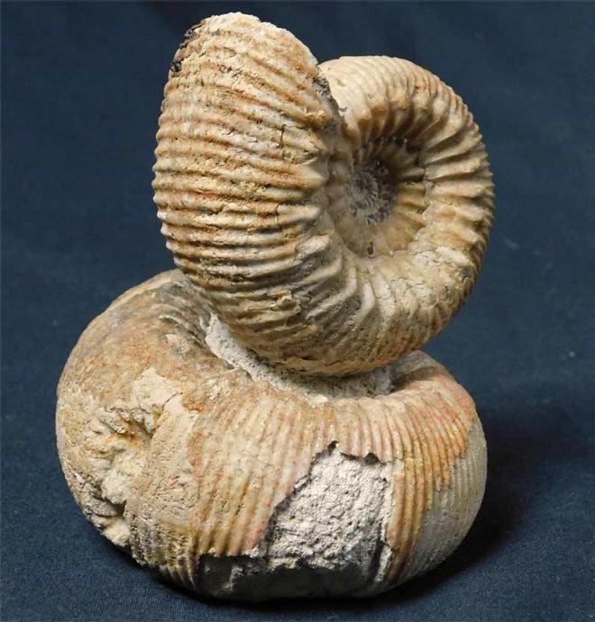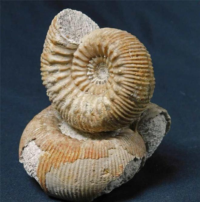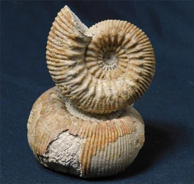 | This amazing fossil is totally natural and unique. After death of the ammonites they drifted down tot he sea floor and one has landed on top of the other, then fossilised in that position. The larger ammonite has shell missing in a few places, so this may have been on the sea bed first being rolled around, before the perfect ammonite landed on top of it. This piece was collected in the early 1980's from a temporary exposure. Many painstaking hours have gone into preparing this wonderful fossil. The perfect ammonite on top has an immaculate centre and small inner spines preserved. A complete one off specimen for the discerning collector. Approximately 170 million years old. |