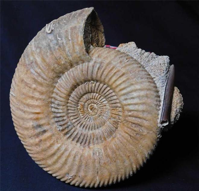 | This superb example exhibits a large solid calcite ammonite preserved both sides with a Belemnite guard attached to a small piece of rock. (Belemnopsis cf.beyrichi). Also there are several worm tubes preserved on the ammonite's whorls. The specimen was discovered in 1990 from an iconic oolithic locality, it has now been a caravan site for the past 30 years. A beautiful and completely unique fossil for either the collector or indeed an interior designer. Approximately 167 million years old. Fossils Direct is a collectors website. |
