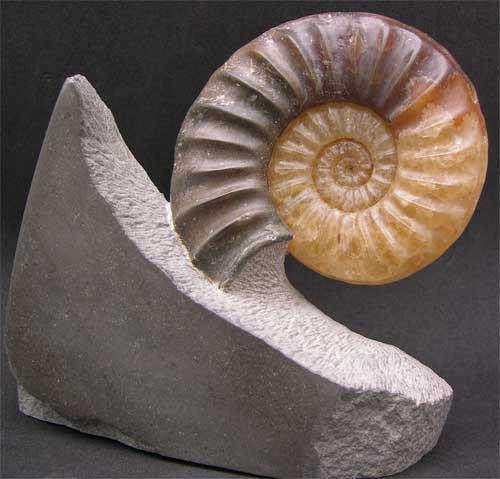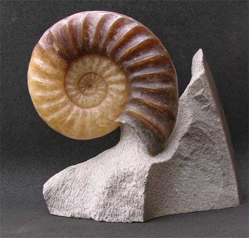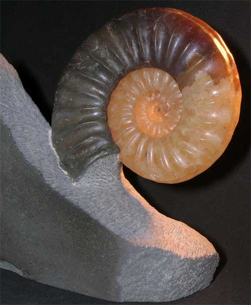 | Fossil Ammonites prepared in this way by Andy Cowap are not only desirable to collectors, but also Interior Designers. With light present at the back of the fossil ammonite the colours are amazing resembling the morning sun. Each sculptured ammonite from this locality prepared by Andy Cowap is unique and very desirable. |