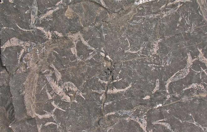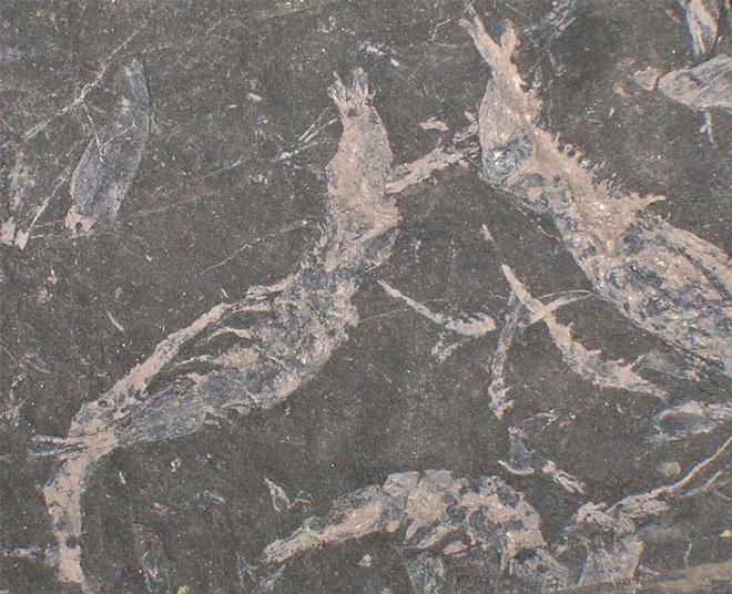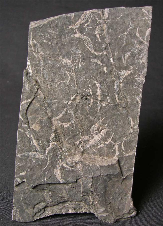 | Waterstonella is a species of fossil crustacean so distinct from other crustaceans that it has been placed in its own genus. The specimen was named after Dr Charles Waterstone who was the keeper of Geology at The Royal Scottish Museum. This specimen consists of several complete and many fragments of primitive shrimps. The white soft shells are made out of chitin a material similar to finger nails. The bed that this came from has been totally removed and it is now impossible to collect any of these specimens. The specimen is approximately 330 million years old and was collected in the 1980's. This would make an important addition to any collection. |