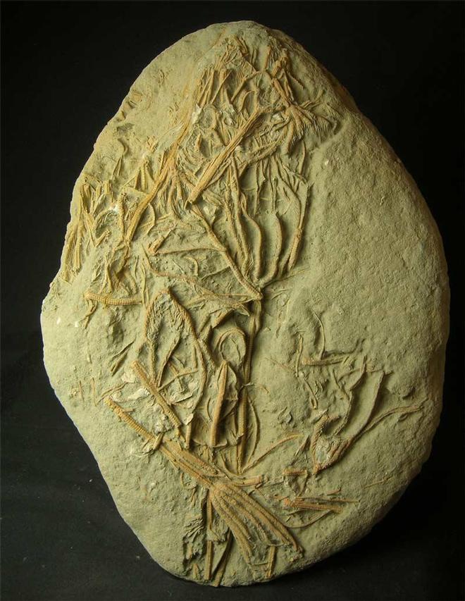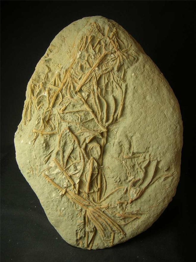 | Only rarely do these very intricate and hard to find specimens come up for sale. This specimen consists of numerous crinoid heads and two more or less complete examples, the longest one being 240mm in length and the other one is 130mm in length. This specimen has been carefully prepared using air abrasive techniques to reveal the fine and detailed crinoids. A real collectors item worthy of any collection. |