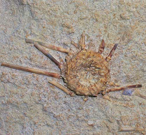| A beautiful example showing partial spines which radiate from the test of the echinoid. Jurassic Echinoids on matrix are rare and highly sought after by collectors worldwide. This specimen was collected in the early 1970's and the locality is no longer accessible to collect from. |