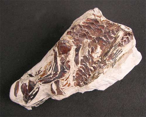 | This specimen was collected in the late 1890's from the chalk pits of Lewes in Sussex. This is the classic chalk fish and is now excessively rare to acquire. This example shows the mouth open with a small section of teeth preserved, scales and fins are also present. Specimens of this calibre are highly sought after throughout the world and rarely are seen for sale. |