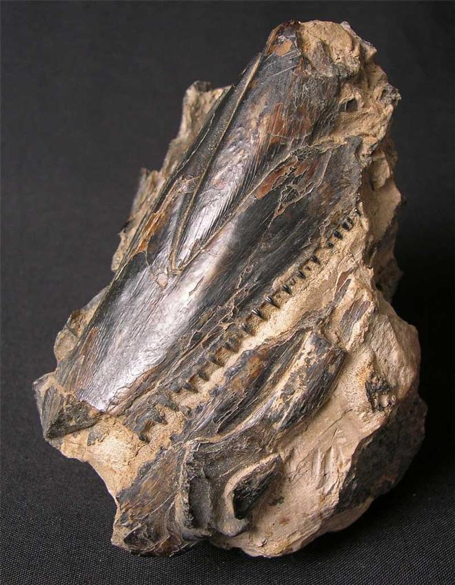 | Only occasionally do fish specimens from the Isle of Sheppey come up for sale as they are very highly collectable and saught after. This is a very fine specimen with a wonderful jaw showing excellent dentition. Also contained within the nodule are further skull bones. This fish lived in the warm seas approximately 50 million years ago. |