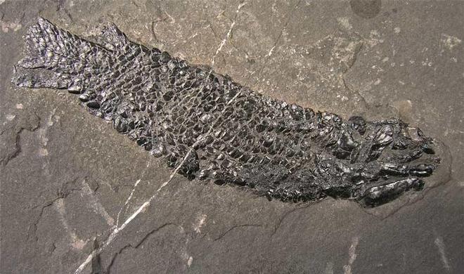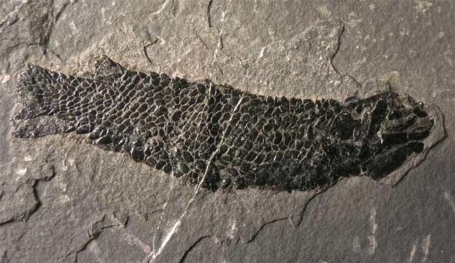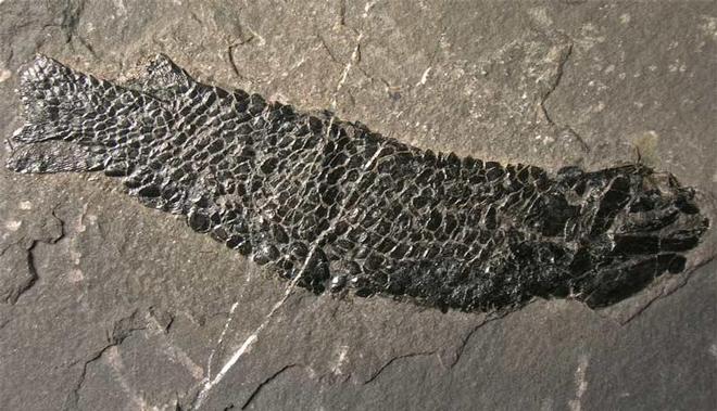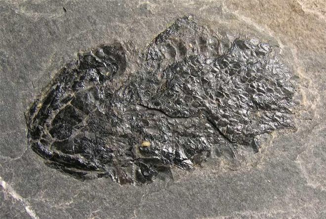 | It is very rare to find such a wonderful and more or less complete Devonian Fish from these classic fish beds of the Orkney Isles. The specimen has stunning shiny scales. The specimen also has a complete head of another Osteoleptis which has been preserved a few inches away from the main specimen. These specimens are highly sought after throughout the world. |