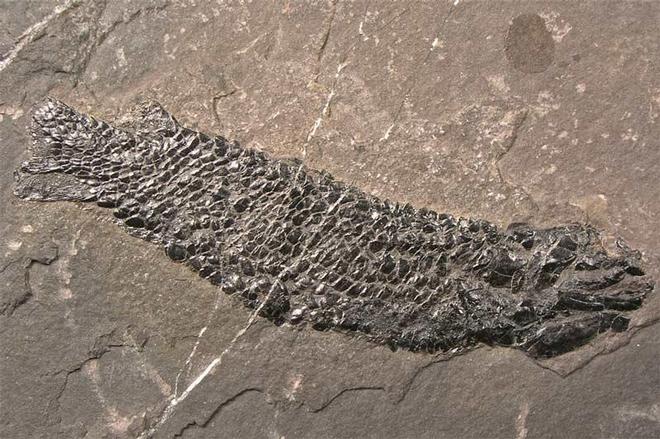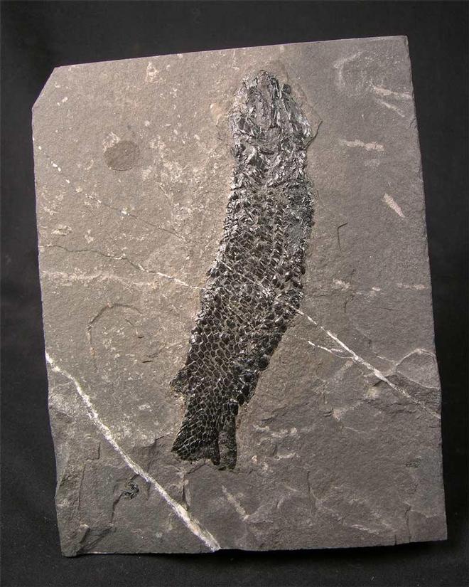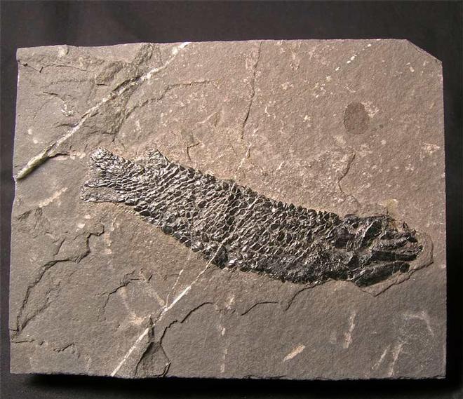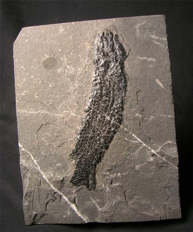 | This complete "lobe" finned fish has been beautifully preserved on a squared block of Devonian flagstone. These fish lived in shallow lakes and rivers and are highly collectable throughout the world and this would make an ideal drawer specimen. |