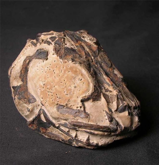 | Fossils from this classic London Clay location are becoming increasingly scarse due to lack of erosion and over-burden falling on the fossiliferous beds. This is a superb three dimensional fish head that has been preserved in a hard phosphatic nodule. The fish head exhibits good skull plates as well as jaws whith teeth. A real collectors item and very sought after !! Approximately 50 million years old. |