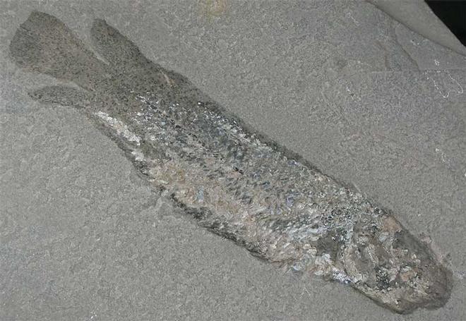 | This specimen was collected over 50 years ago from this classic, world famous location. The fish has been excellently preserved on a lovely piece of hard marl shale. The definition throughout the specimen is exceptional especially the lung fish's 'lobes'. This is a fine specimen and would grace any collection. |