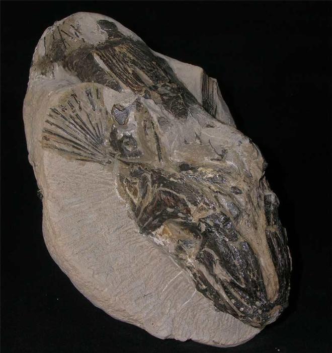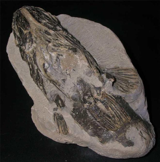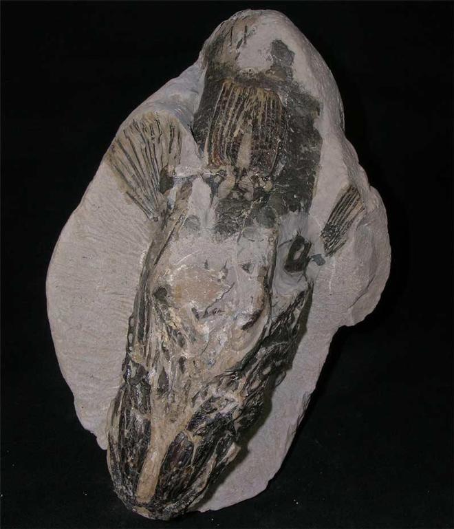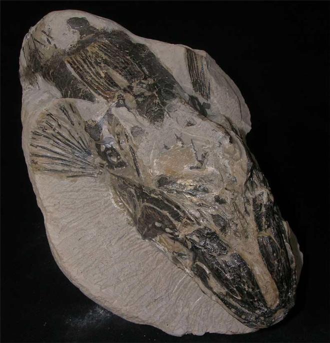 | A stunning highly three dimensional fish skull which has been beautifully preserved in a hard phosphatic nodule. The fish has been preserved "belly up" thus showing the underside of this fish. Preserved are four sets of fins as well as part of the body which is exceptionally rare and very few have been preserved in this beautiful posture. The specimen was collected in the 1970's and has been in the same collection since the day it was found until now. A great opportunity to own a very three dimensional UK fish fossil. |