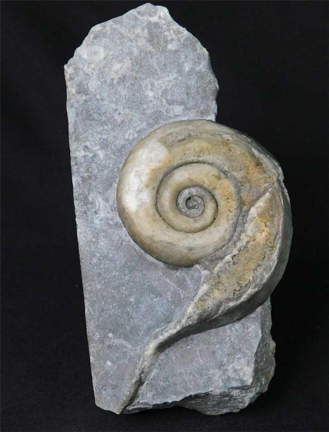 | Collected way back in the 1950's this specimen has remained in the same collection until now. The specimen comes from the Cretaceous limestone of The Great Orme, which is probably more famous for the ancient copper mines. The specimen is an exceptionally large example, preserved in white calcite. A "must" for any serious collector of gastropods or indeed, fine fossils. |