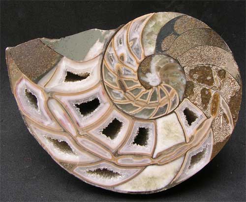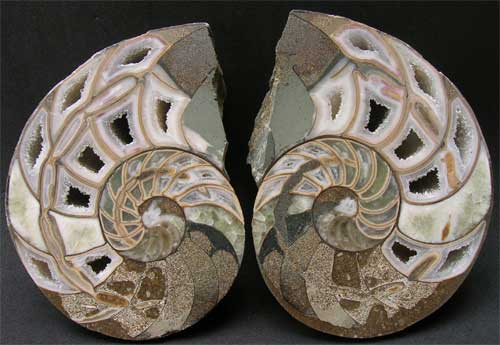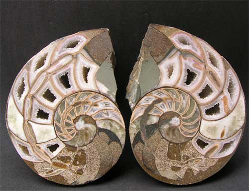| A very beautiful cut and polished nautilus from this world famous fossil locality which sadly is no more. Fossil nautiloids are extremely rare from the Frodingham Ironstone. This cut and polished pair will make a super display piece. Approximately 200 million years old. |