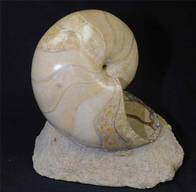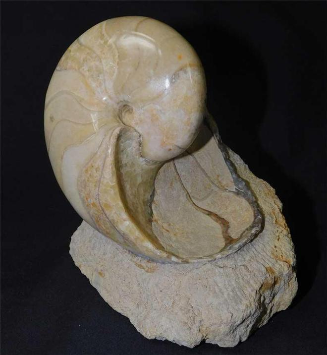 | This really nice specimen has been semi sculptured, ground gem smooth and finally a high polish applied to reveal wonderful colours and detail. Nautilus from this iconic locality are scarce to find thesedays. The matrix has a flat base and attached to it is an anti slip and scratch pad for peace of mind when displaying on wooden or glass surfaces. A really nice piece for either the home or office space. Approximately 167 million years old. |