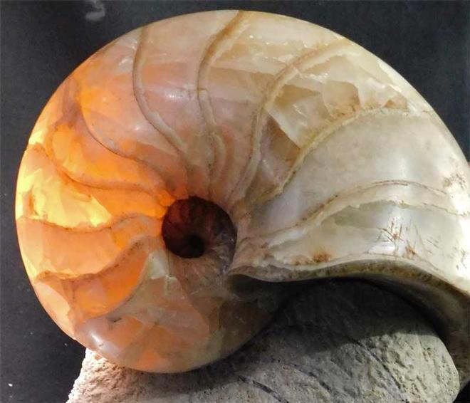 | This fantastic 170 million year old nautilus has been fully prepared to reveal pale yellow transluscent chambers. The centre of the nautilus is immaculate. Very rarely do you see fossil nautilus of this quality come onto the open market for sale. On the matrix also is a juvenile Stephanoceras ammonite which really makes the piece highly aesthetic. The matrix has a cut and level base for upright display. Here at Fossils Direct, we are constantly striving to bring our customers both old and new, the very finest fossils from around the United Kingdom. |