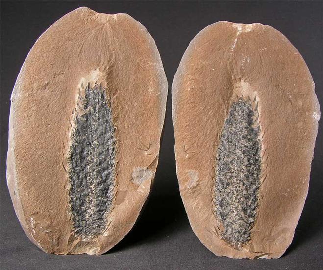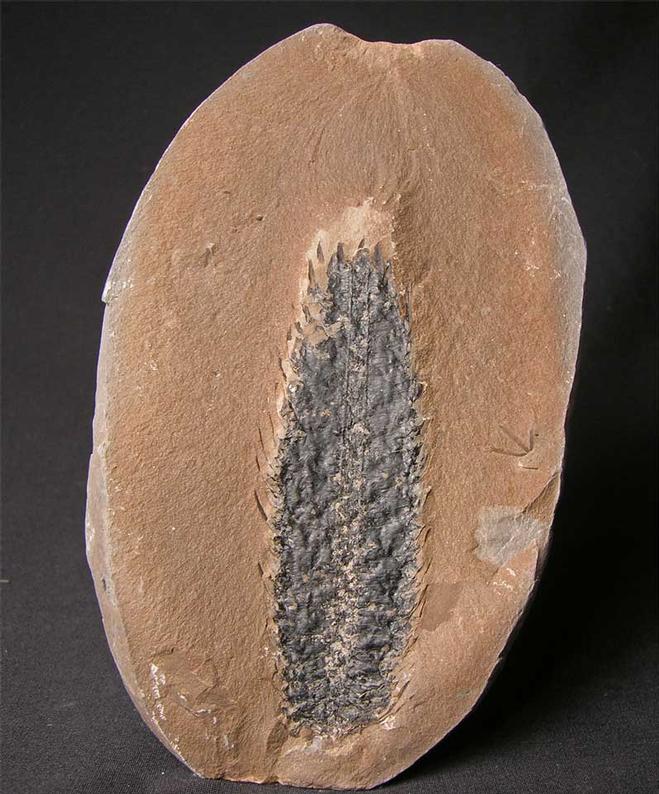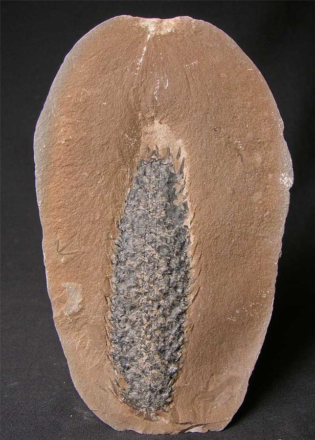 | This is an exceptionally well preserved "Spore Cone" from this Clubmoss Tree. The specimen has been preserved in a hard ironstone nodule and is from the now closed Crock Hey Open Cast Mine. Specimens of this quality are highly sought after. |
