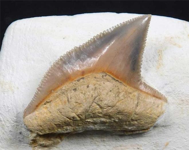| Preserved on a small block of chalk is this stunning tooth. The tooth has all the serrations preserved and under fine magnification is absolutely magnificent. Teeth such as this rarely come onto the open market and are highly sought after by shark teeth collectors. |