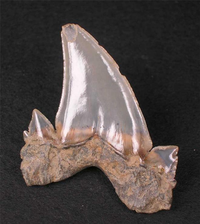 | This is a large and beautifully preserved classic shark's tooth from this world famous Eocene deposits of Sheppey. There is a slight 'nic' in the outer edge of the tooth however, the rest of the specimen is of stunning quality. |