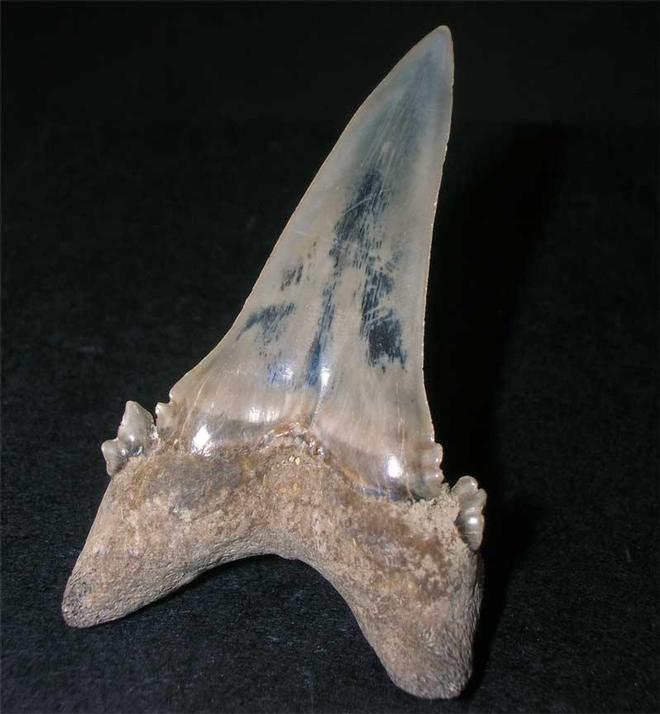 | From an old collection comes this rather superb and high quality shark's tooth. The tooth has a lovely patina and the side cusps are exceptionally well preserved. Teeth of this size and quality are now becoming scarse. |